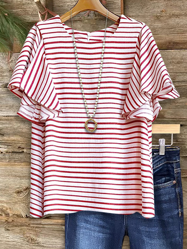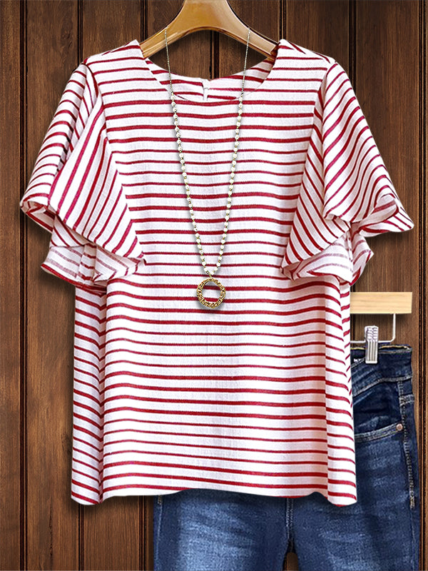Classic stripes meet sweet ruffles in this versatile blouse. Whether you're headed to the office or lunch on the porch, this top keeps you looking polished with a touch of playful Southern charm.