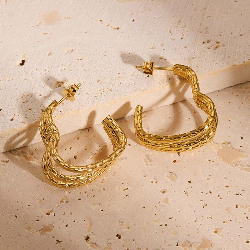 Elevate your everyday look with these textured gold hoop earrings. Featuring a hammered finish and modern open-hoop design, they strike the perfect balance between chic and bold. Lightweight and stylish, they’re ideal for pairing with both casual and dressy outfits, adding instant elegance to any occasion.