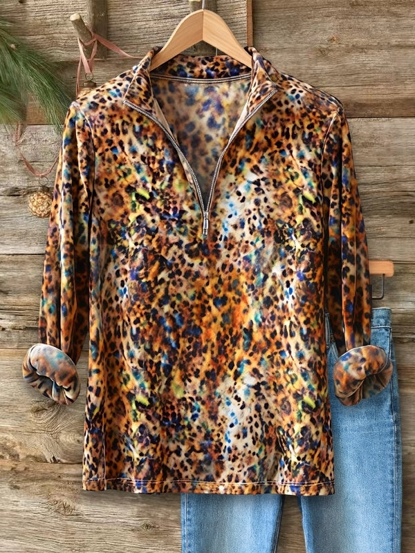 A vibrant half-zip top with a stretch feel and eye-catching leopard print. Easy to dress up or down, it’s the perfect throw-on piece when you want something fun, unique, and super comfortable for everyday wear.