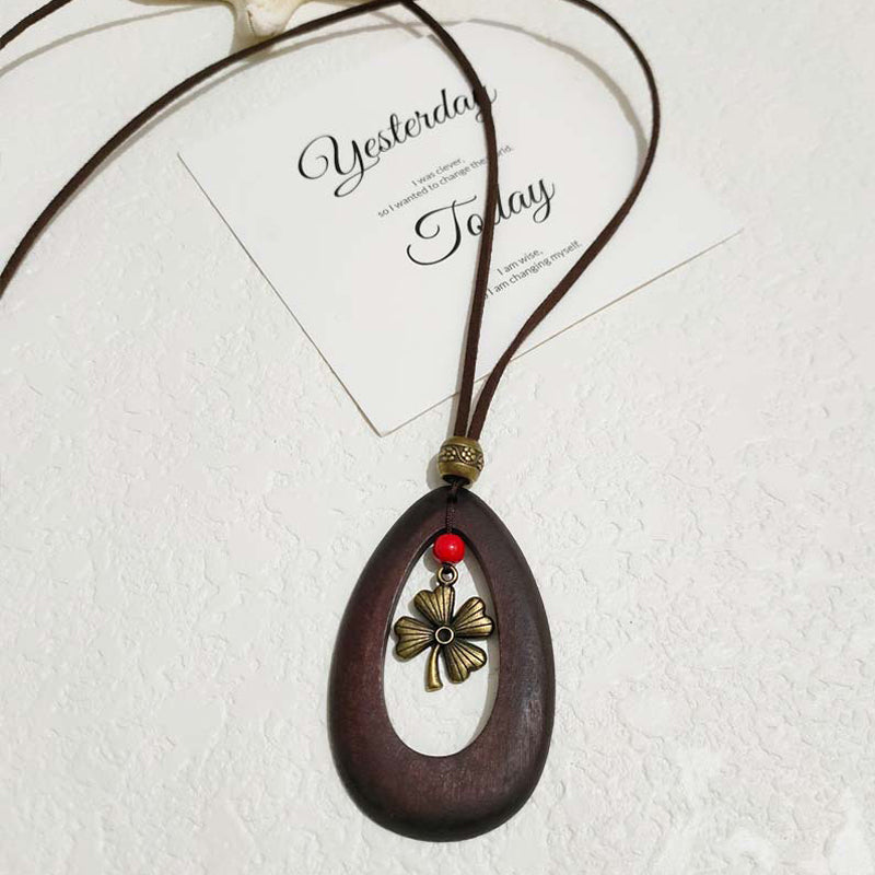 Add a touch of luck and vintage charm to your style with this Clover Charm Necklace. Designed with a wooden oval frame, antique bronze clover, and a bold red bead accent, it’s the perfect balance of earthy and chic. Pair it with casual blouses or bohemian dresses for an effortlessly stylish vibe.