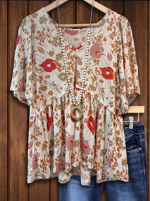 Embrace retro vibes with this charming floral blouse, perfect for a day out in the sunny South. The soft, flowy fabric and classic print make it a timeless addition to your wardrobe.