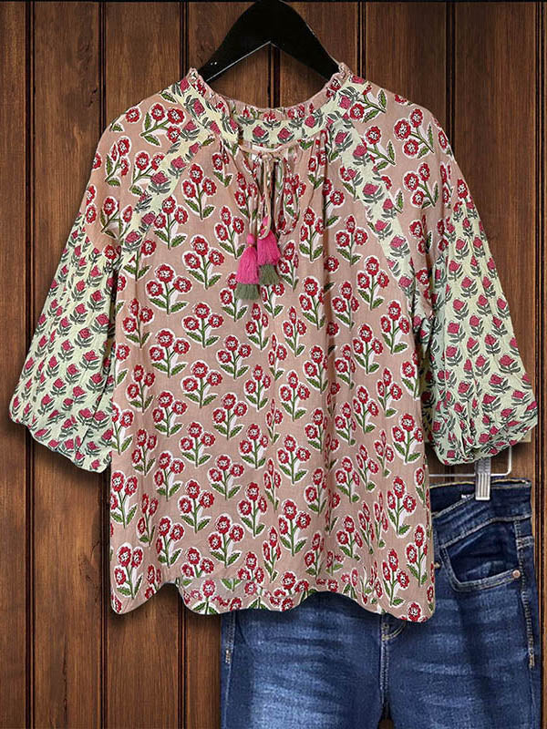 Embrace classic southern charm with our Vintage Floral Patchwork Fringed Lace-Up Blouse. This feminine and romantic top features delicate lace details and a flattering silhouette, perfect for any occasion.