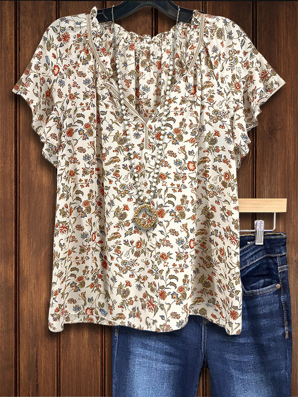 Transport yourself to a bygone era with our Vintage Floral Ruffle Casual Blouse, featuring nostalgic floral prints and charming ruffle accents. Crafted from soft, lightweight fabric, this blouse offers a blend of comfort and vintage-inspired elegance. Whether you're attending a garden party or exploring Southern boutiques, its timeless appeal and flattering fit make it a must-have. Pair with high-waisted skirts or trousers to complete a look that embodies Southern grace and refinement.