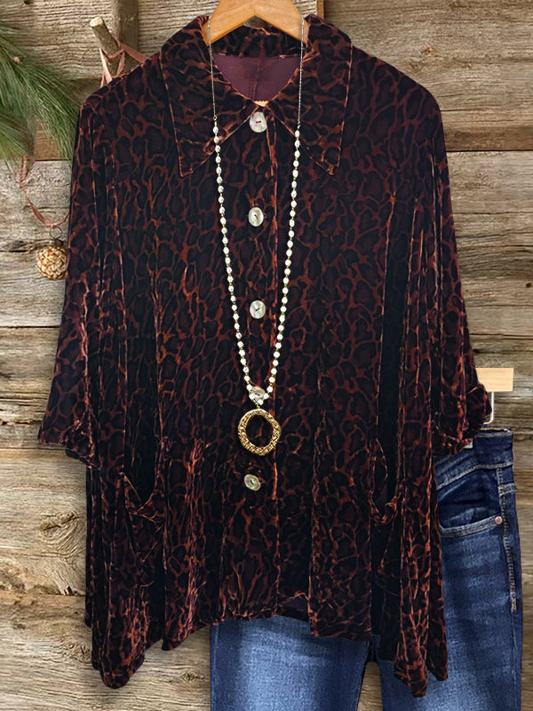 Luxe and bold, this velvet leopard print blouse brings vintage flair to your wardrobe. The rich velvet adds texture and sophistication, making it perfect for pairing with jeans or tailored pants for a standout look with a touch of wild Southern charm.