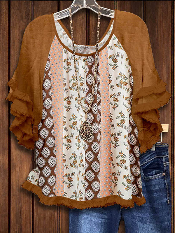 Channel your inner boho goddess with the Vintage Tribal Print Patchwork Casual Blouse, a unique and eye-catching piece that will make heads turn. This blouse is perfect for adding a touch of eclectic charm to your wardrobe.