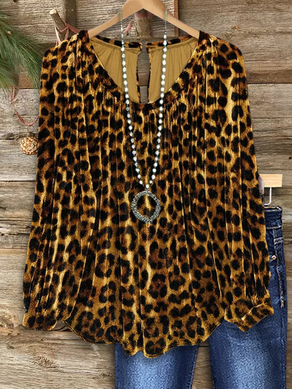 Embrace bold, free-spirited style with our Wild Amber Flow Blouse. The rich leopard print pairs with a soft draped silhouette that moves beautifully with you. The gathered neckline and airy long sleeves create a relaxed yet refined look. Perfect for nights out, fall festivals, or anytime you want to feel confident and unstoppable.
