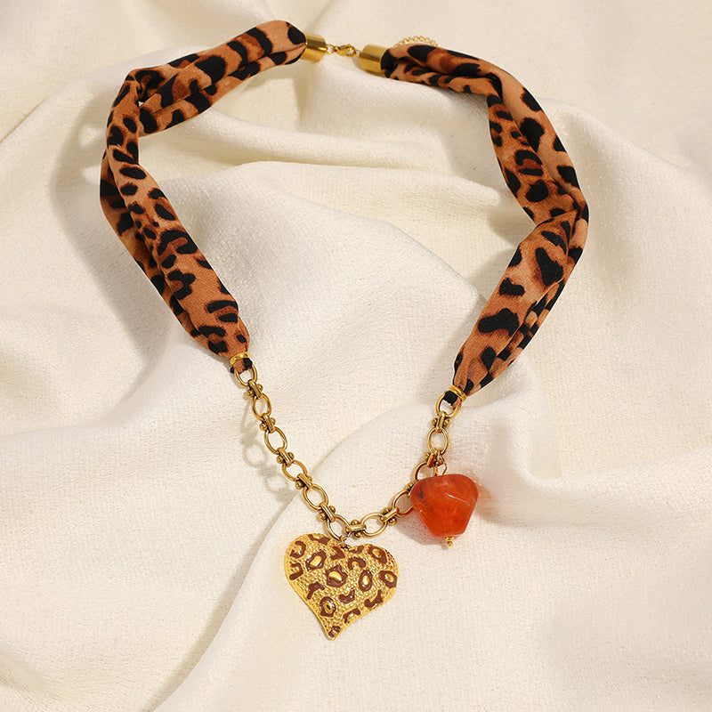 Wild Heart Leopard Fabric Chain Necklace