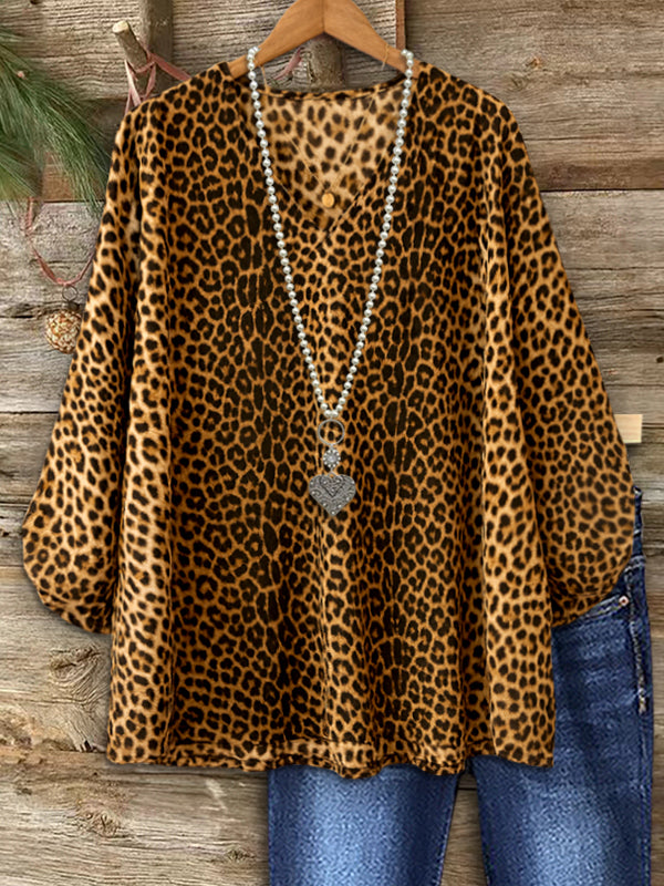 Make a bold, confident statement with the Wild Luxe Leopard Top. The relaxed V-neck and flowy long sleeves add movement, while the rich leopard pattern brings timeless edge and glamour. Effortlessly pair it with denim for casual days or dress it up with black pants for evening outings.