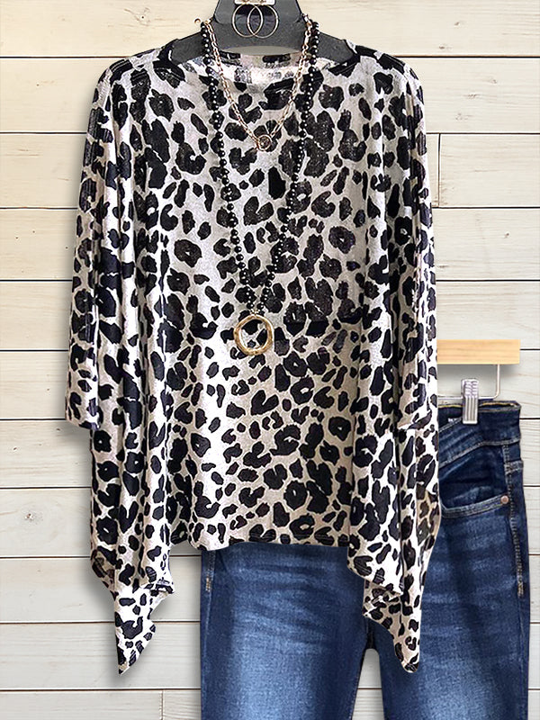 Unleash your wild side with this bold leopard print top, designed with an asymmetrical hem for a modern twist. The lightweight fabric and relaxed cut make it versatile for layering or wearing solo. Perfect for pairing with black denim and statement accessories for a confident, head-turning look.