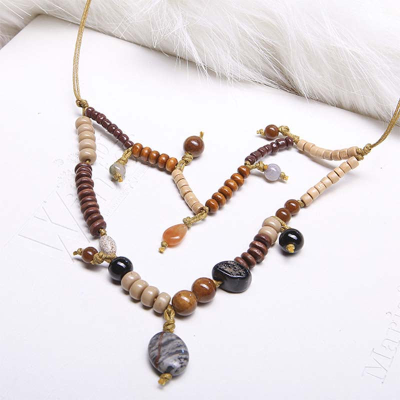 Earthy and stylish, this Wood Beads and Turquoise Pendant Necklace captures the spirit of Southwestern style. With natural wood beads and a striking turquoise pendant, it’s an accessory that brings a warm, rustic feel to any outfit, perfect for layering over flowy blouses or dresses.
